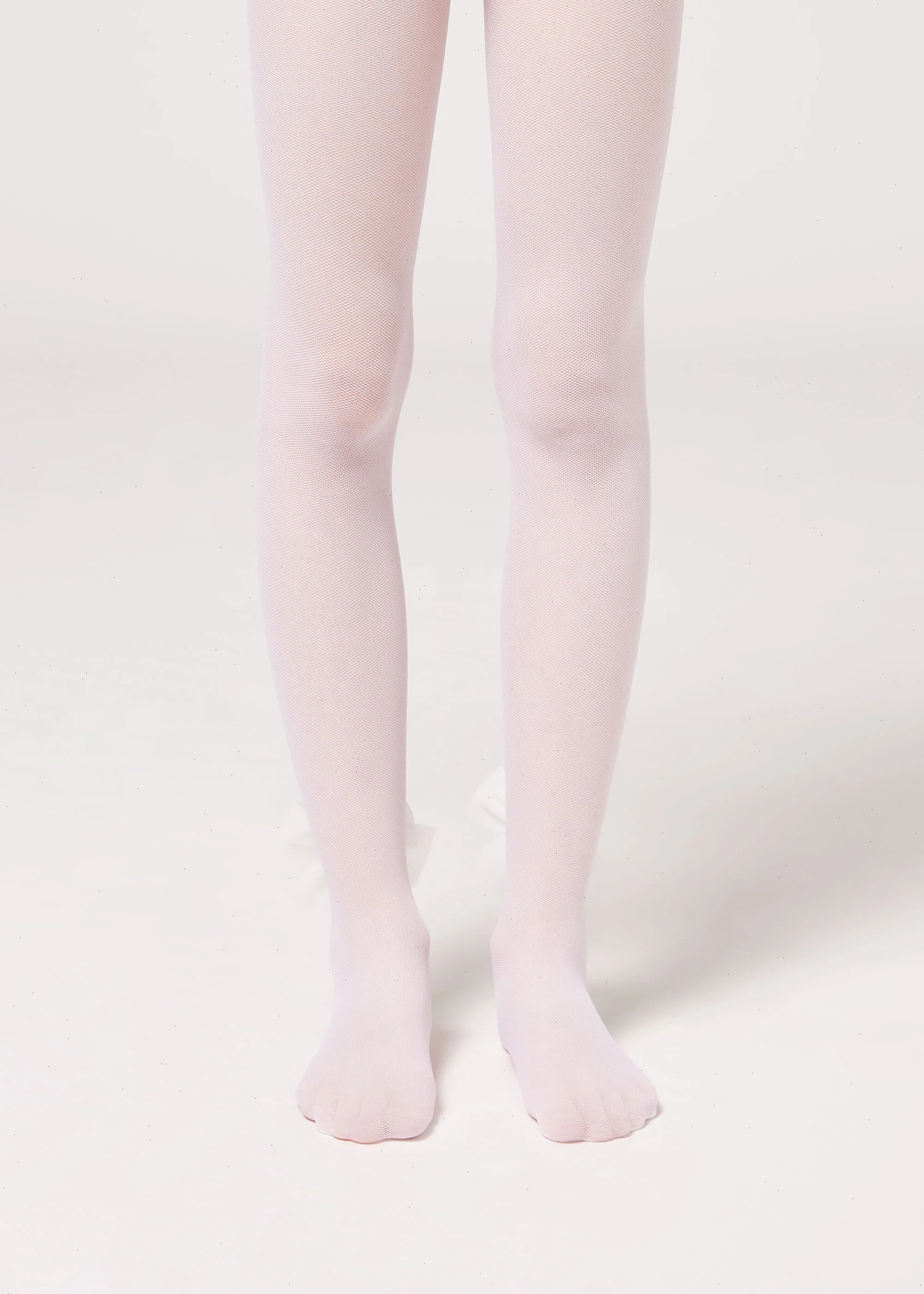 Girls’ 30 denier tulle tights featuring an elegant bow appliqué.