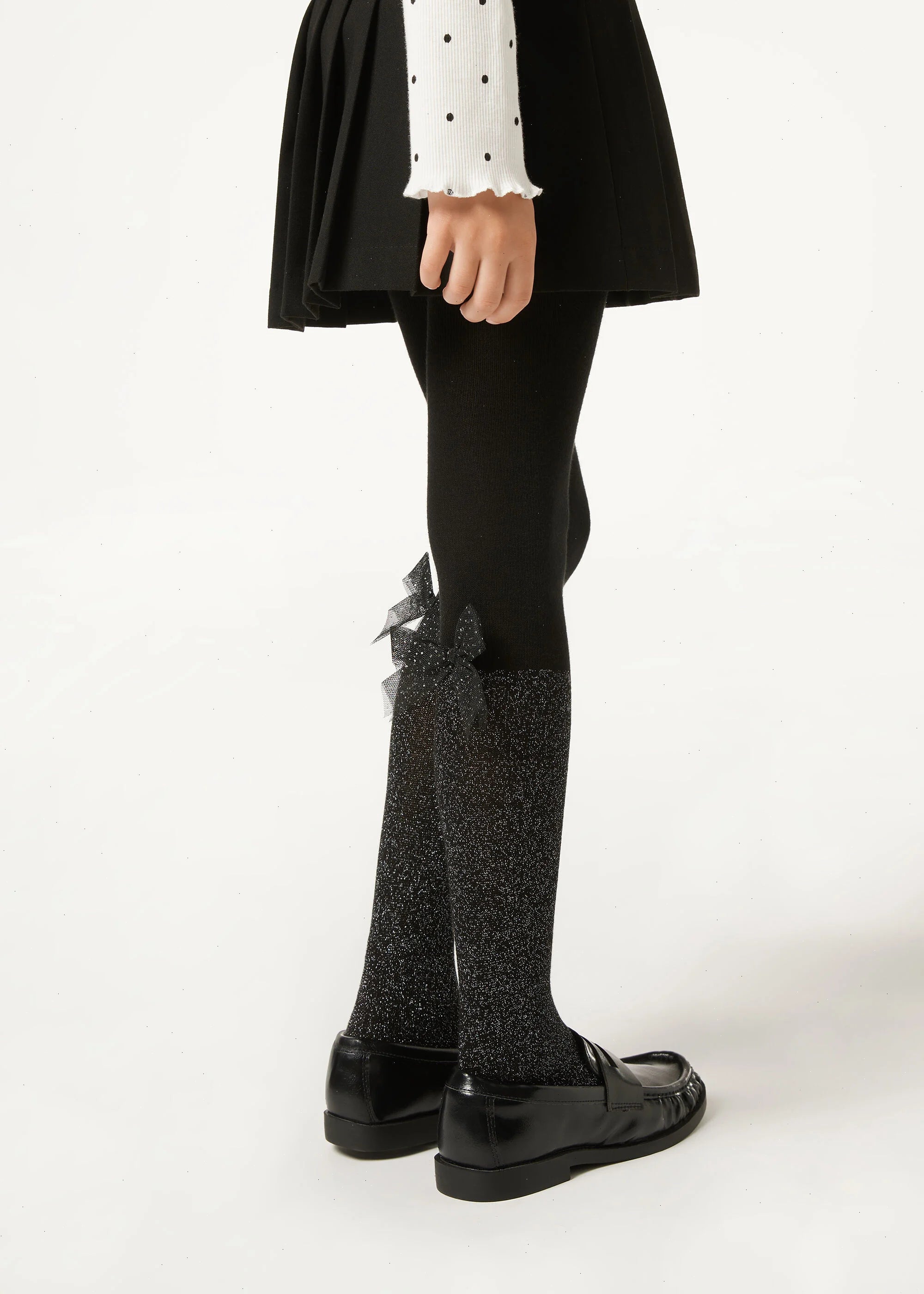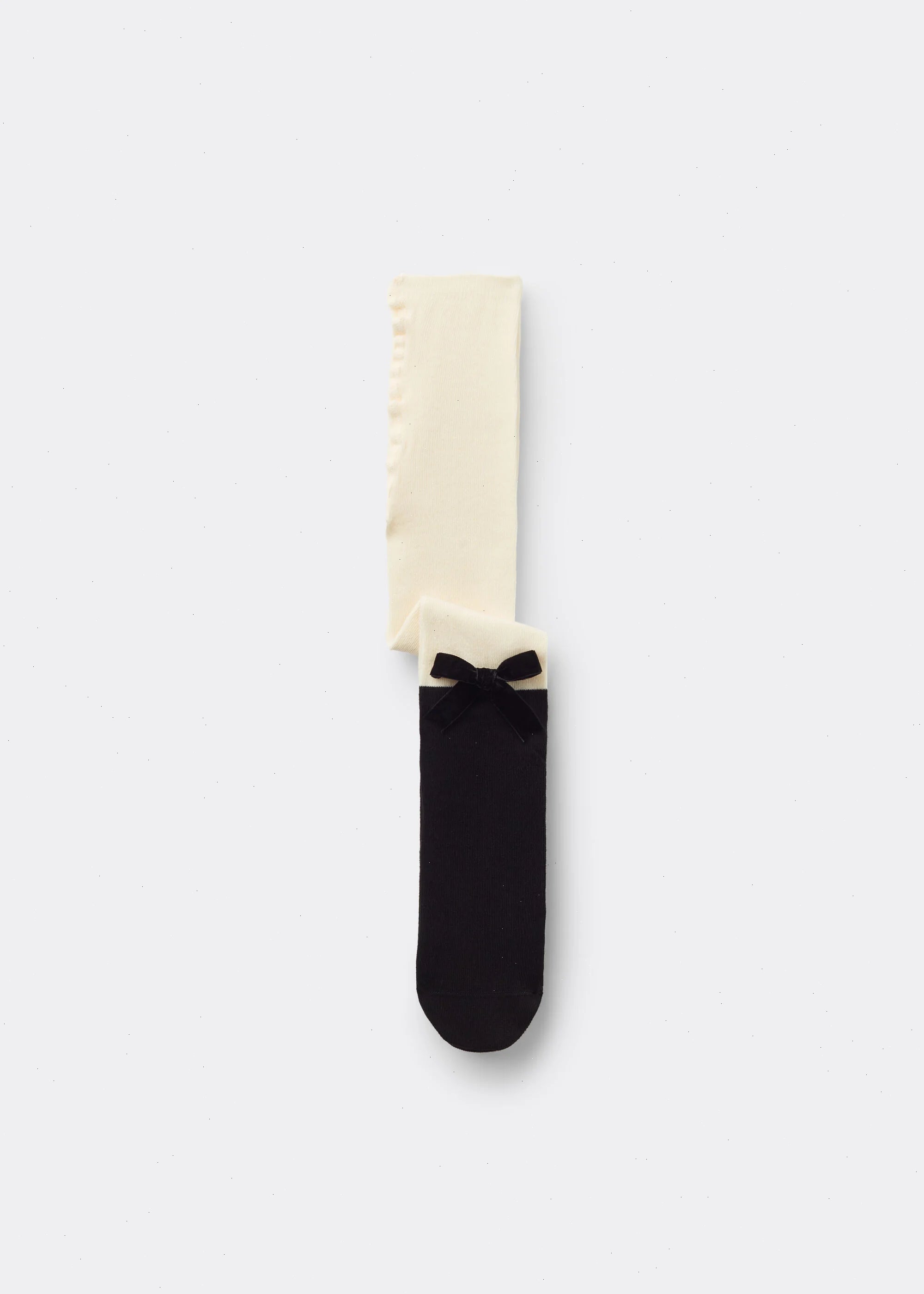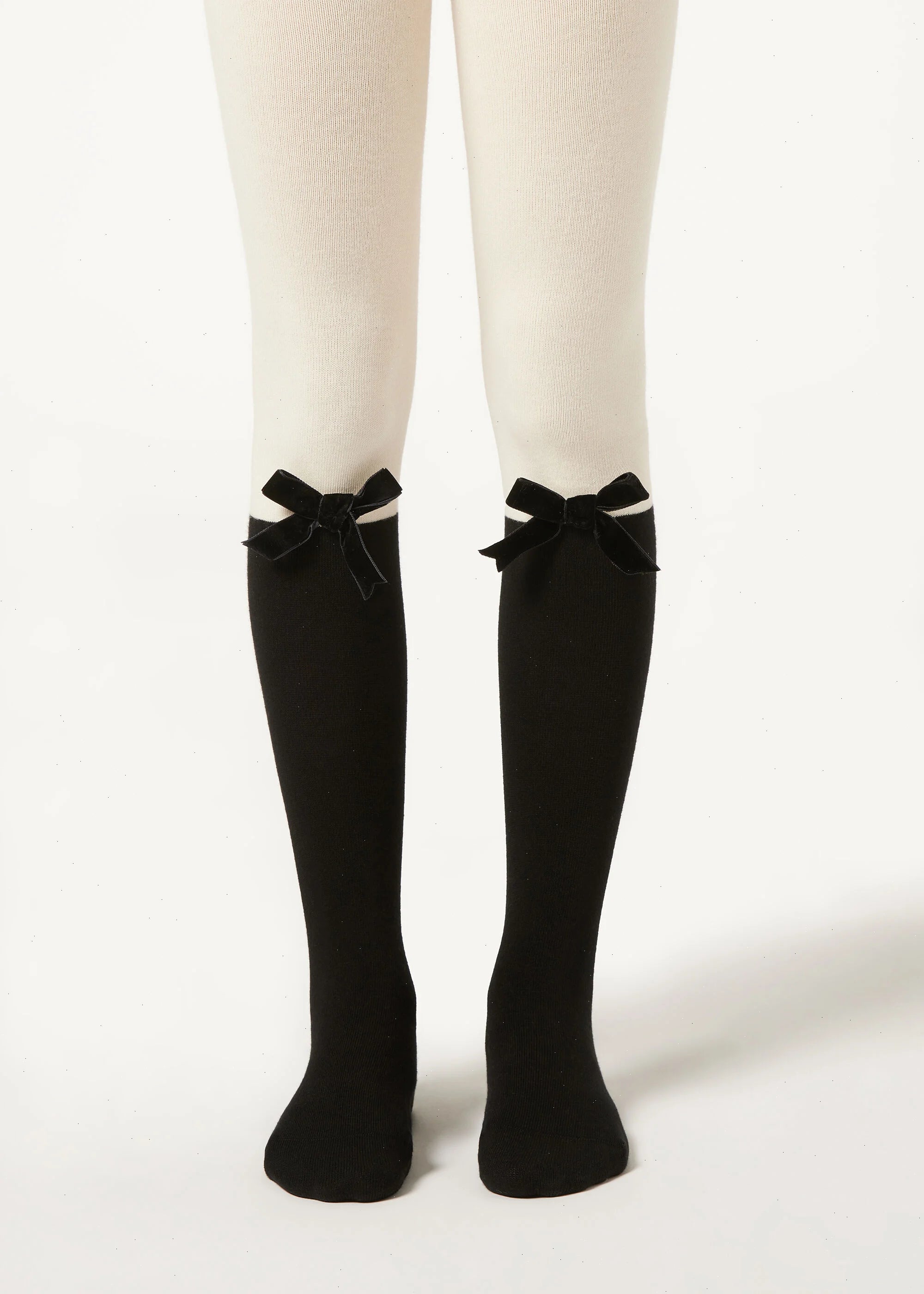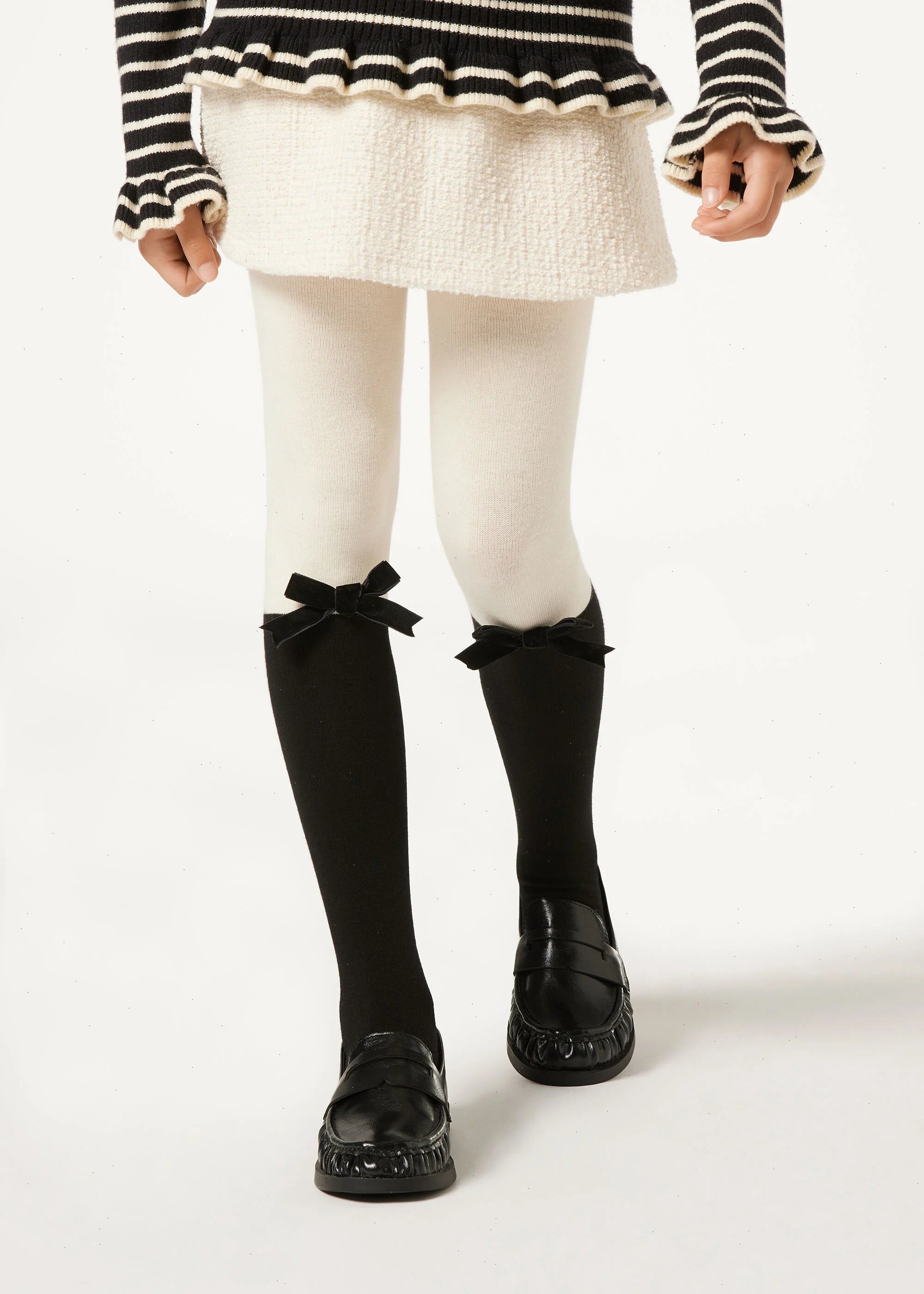 Girls’ longuette effect cotton tights trimmed with a velvet bow. Soft, warm and with a romantic style, perfect for completing the most refined looks.