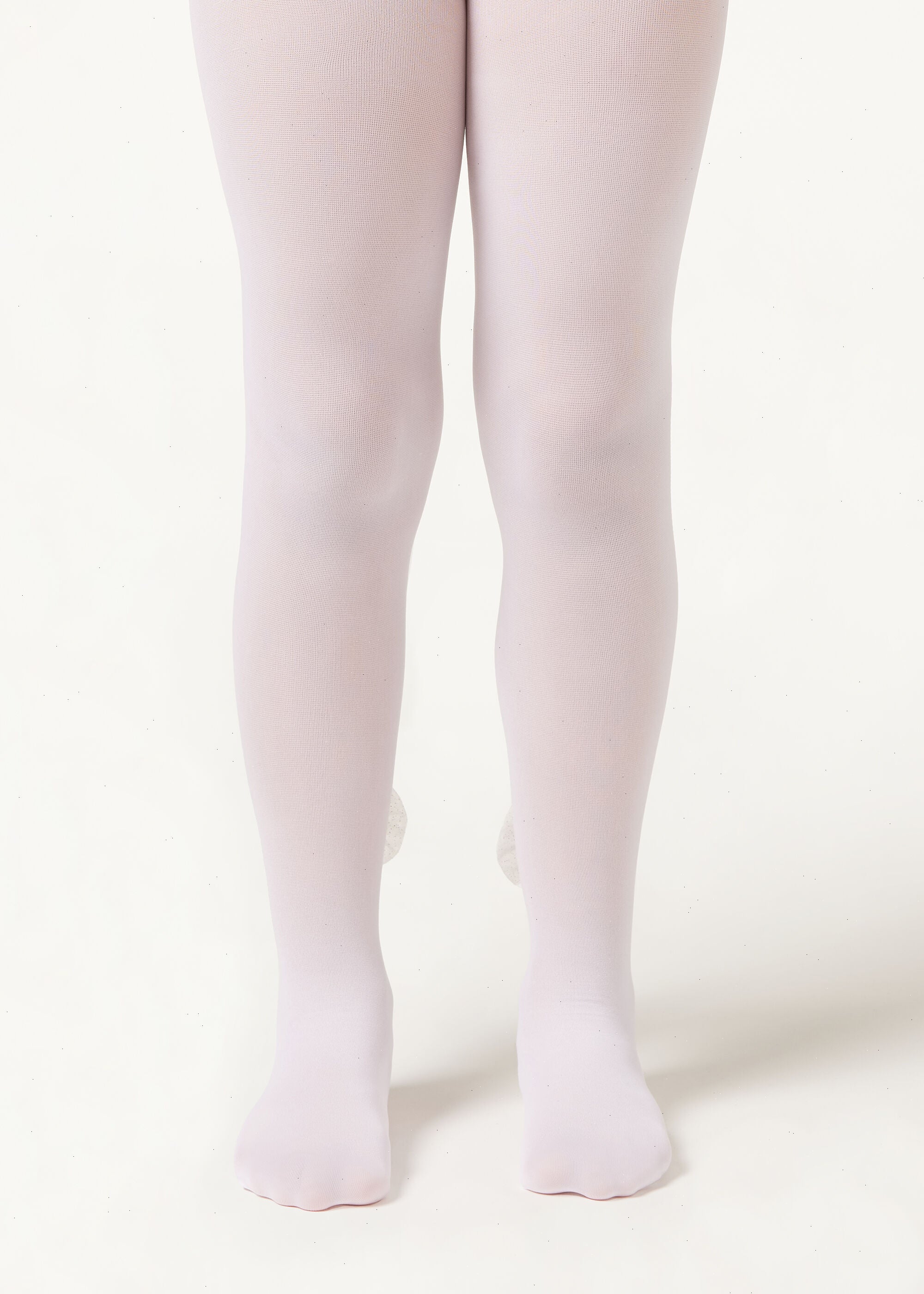 Girls’ opaque 30 denier tights with an elegant tulle bow appliqué and glitter at ankle height.