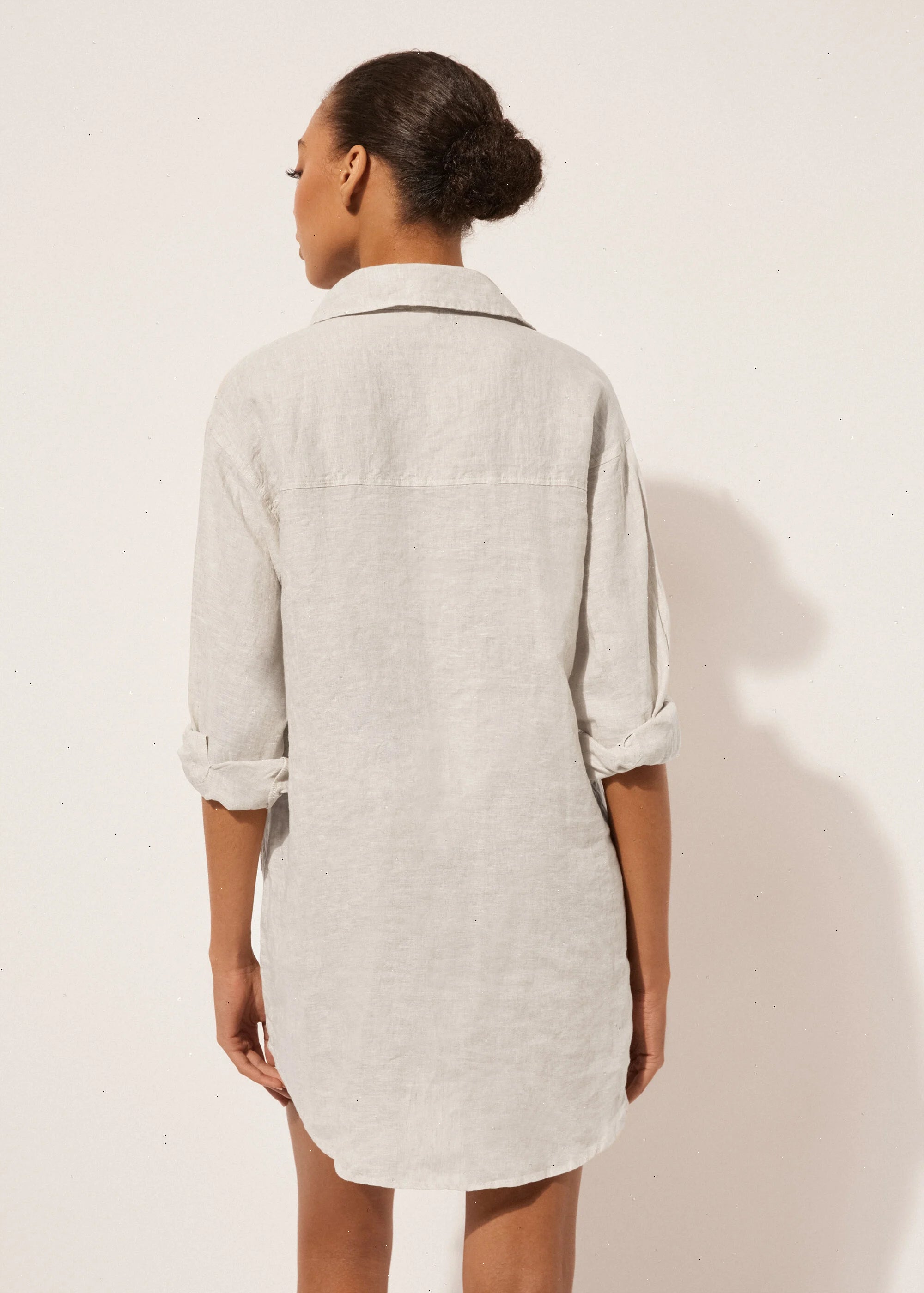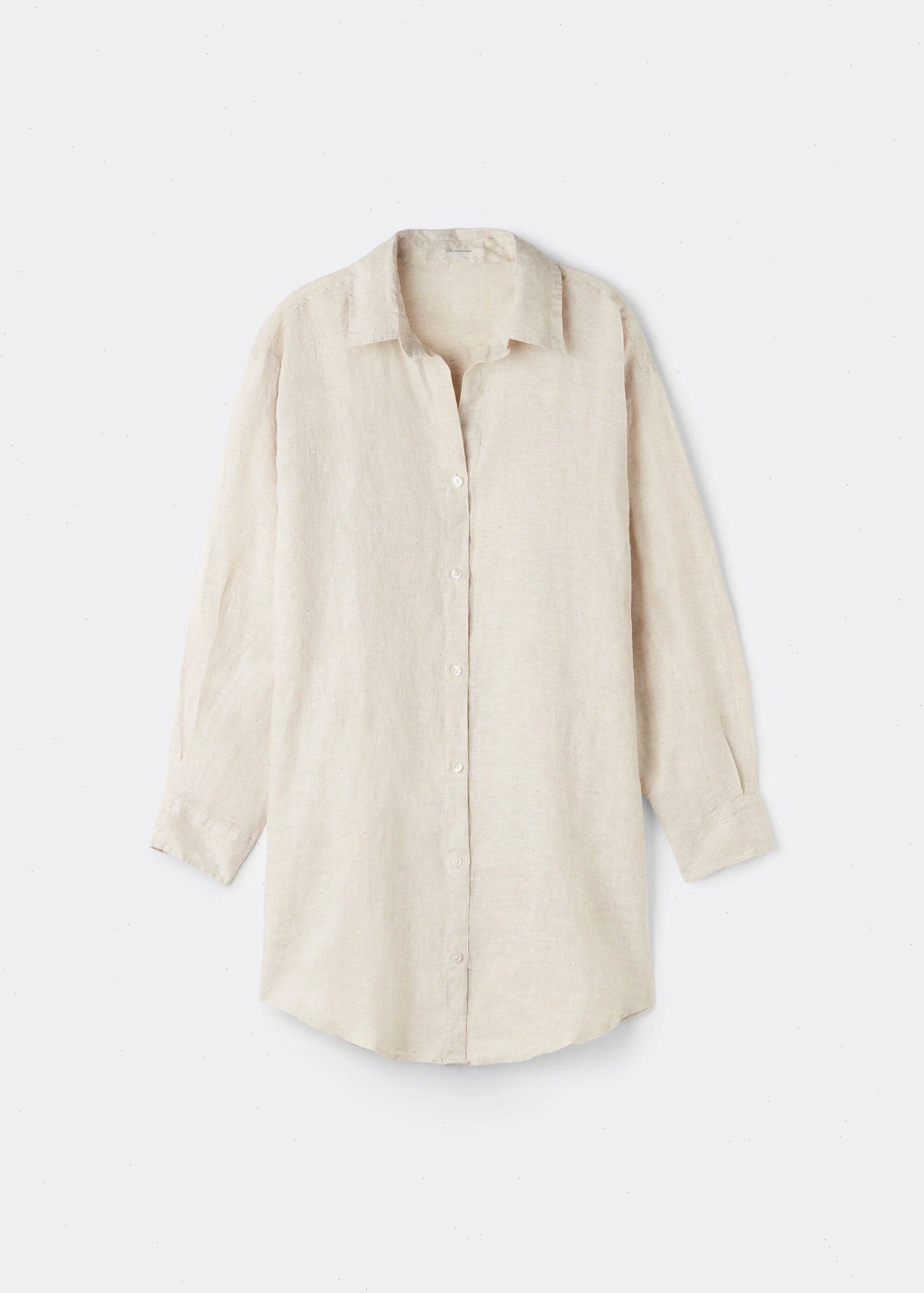 Button up shirtdress in linen for those who love natural fibers, with lapel collar and long sleeves. Above-the-knee length.