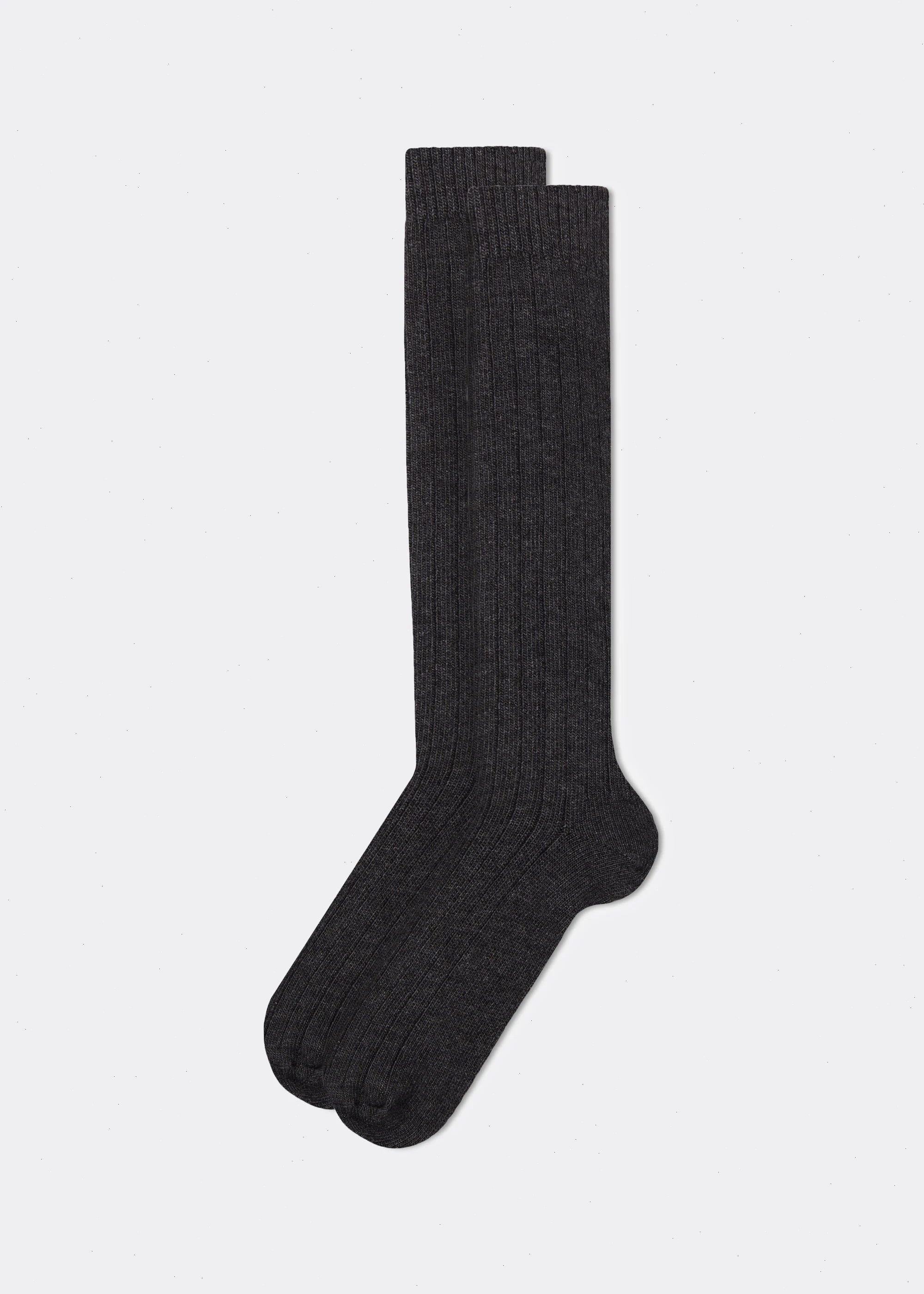 Men's long ribbed socks made with wool and cashmere, fabrics capable of guaranteeing warmth and comfort during the colder months. The soft, enveloping yarn offers a perfect fit and a pleasant feeling on the skin. Perfect for completing winter looks, these men's cashmere socks can be easily paired with boots or elegant shoes.